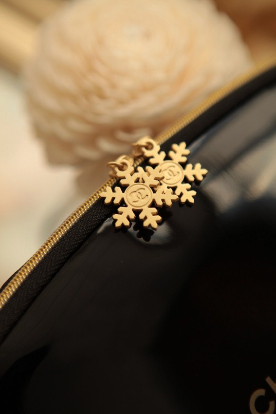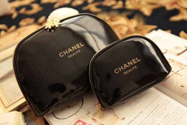 กระเป๋าใส่เครื่องสำอางจาก Chanel ตัวกระเป๋าเป็นหนังแก้วออกวาวๆค่ะ และที่จับซิปยังเป็นสีทอง สวยมากเลยค่ะ