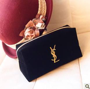 กระเป๋าใส่เครื่องสำอางผ้ากำมะหยี่สุดหรูจาก YSL ด้านในเป็นผ้าไนล่อน และยังมีช่องเล็กๆข้างในกระเป๋าด้วยจ้า