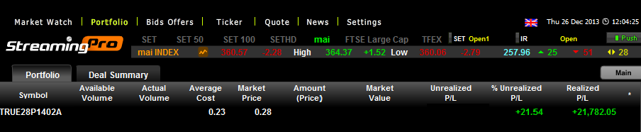 วันนี้ปิดทรูไปแล้วนะ ได้กำไรมาเยอะแต่ลงเงินจำนวนน้อย