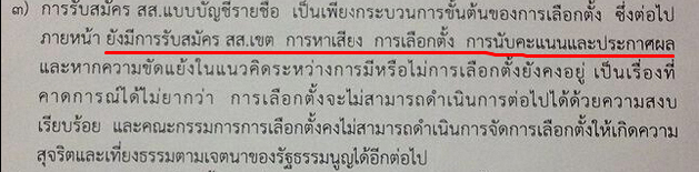 แถ-ลงในข้อนี้ของ กกต. ส่อเจตนาชัดเจนว่าไม่ต้องการให้มีการเลือกตั้งตามกำหนดเดิมเท่านั้น เพราะที่จริงแล้ว กระบวนการต่อไป