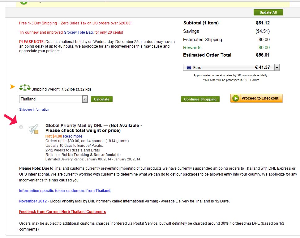 Iherb ไม่มีจัดส่ง DHL แล้วเหรอครับ?