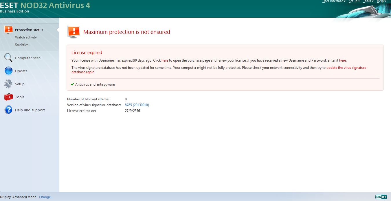 ส่วน nod32 ผมมันขึ้นว่า ไม่มี license แบบนี้คือตอนนี้ผมไม่มี anti-virus ใช่ไหมครับ