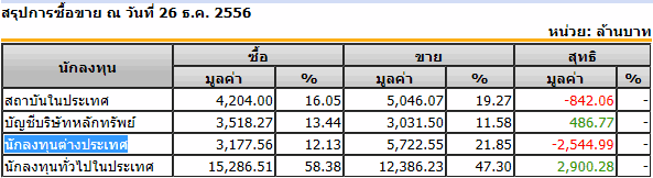Sinthorn Summary 26/12/2556 : ต่างชาติขายสุทธิ -2,544.99 ลบ.