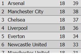 ตารางคะแนนพรีเมียร์ลีก ฤดูกาล 2024/25 สัปดาห์ที่ 20