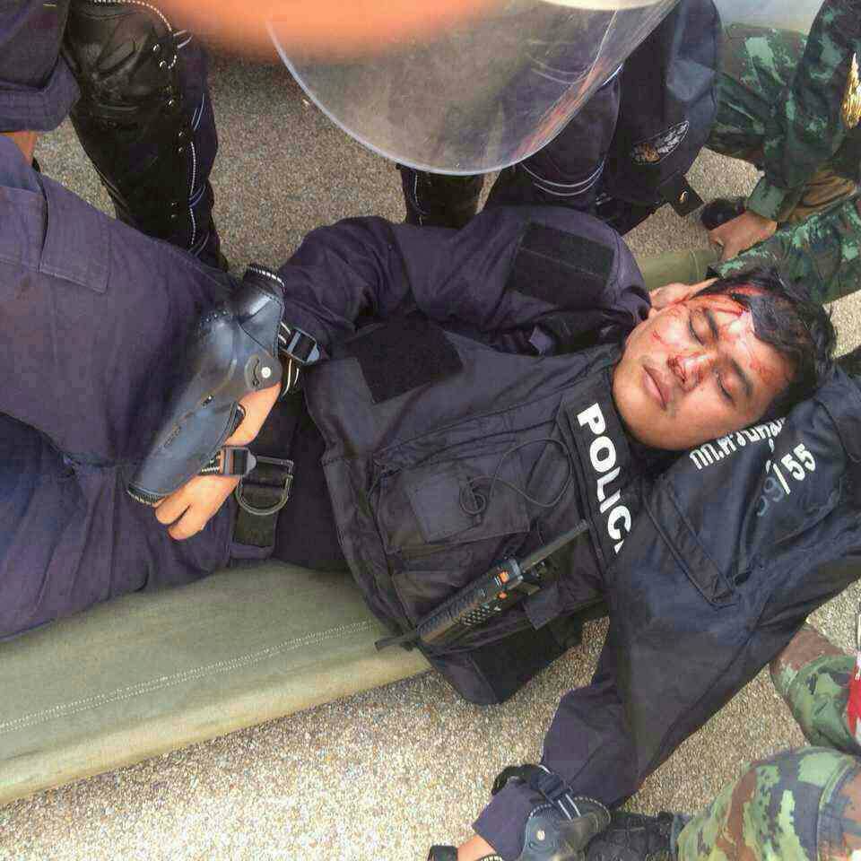 ตำรวจถูกม๊อบของบักเมือกยิงหน้าฝากสาหัส