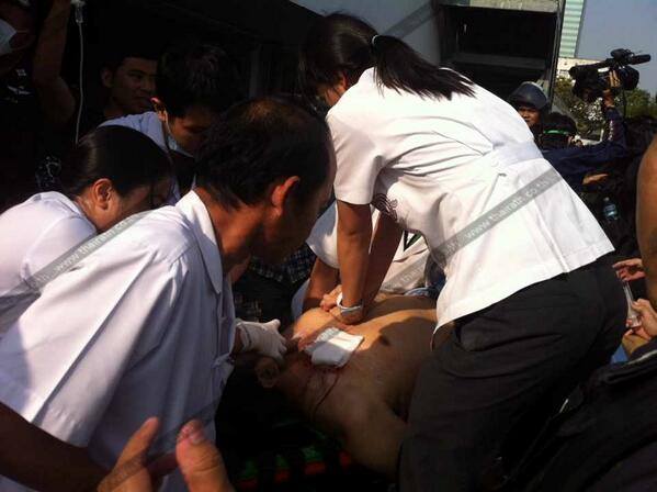 คนเสื้อแดง๔ูกม๊อบบักเมือกแทงด้วยมีดปักคาพุง