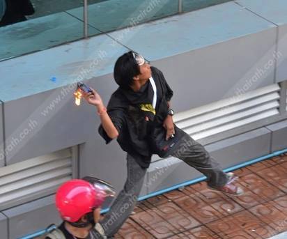 กำลังปาระเบิดเพลิง เข้าใส่จนท.