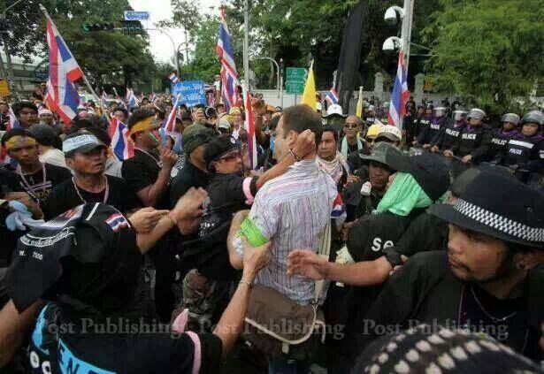 ตำรวจถูกม๊อบบักเมือกรุมตี