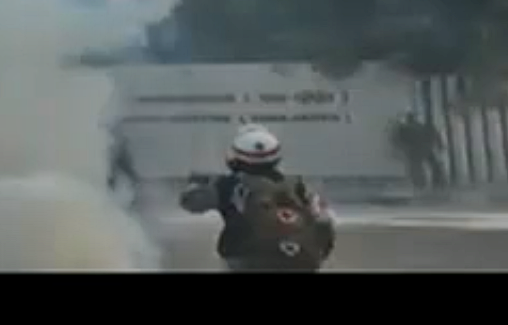 เป็นภาพของเหตุการณ์วันที่ 26 ธันวาคม 2556 ที่ม็อบกบฎนกหวีดบุกไปขัดขวางกระบวนการเลือกตั้ง ซึ่งในเหตุการณ์ได้มีการทุบทำลายทรัพย์สินของทางราชการ และมีการยิงปืนใส่ตำรวจจนเจ้าหน้าที่ตำรวจได้รับบาดเจ็บและเส