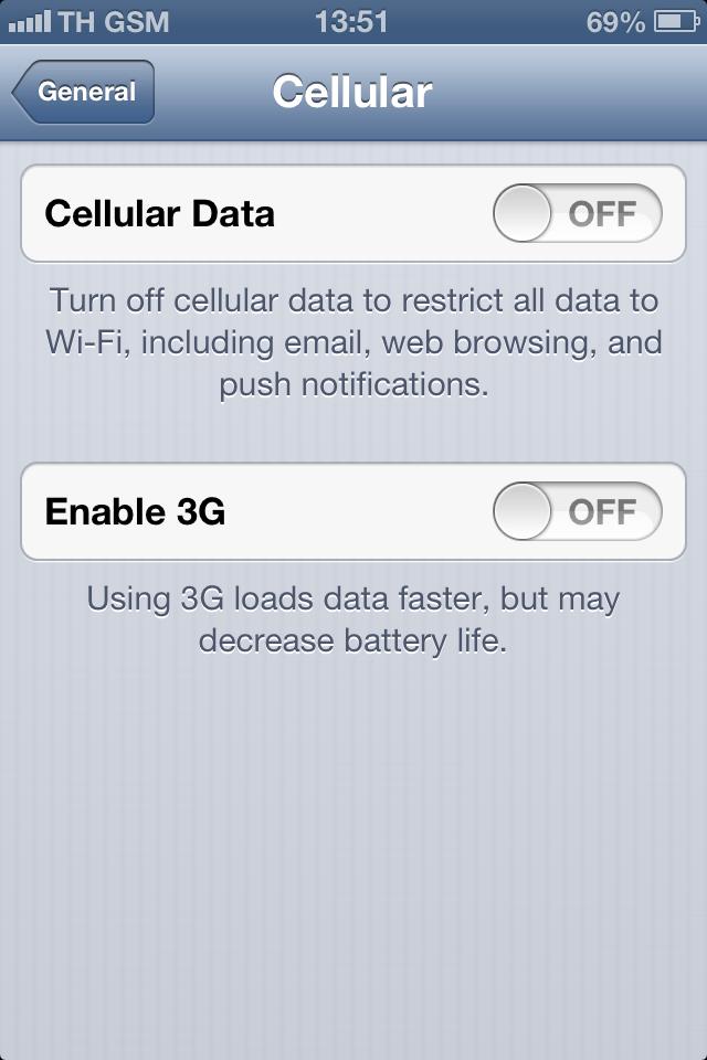ตามหัวข้อกระทู้เลยครับเพื่อนๆ อยากให้เพื่อนๆ ช่วยอธิบายวิธีการปิด 3G บนระบบ iOS 8 หน่อยครับ ปกติแล้ว ถ้าเราไม่ต้องการใช้ 3G มุมบนที่แสดงสัญญาณจะขึ้น TH GSM แต่หลังจากที่อัพเดทเป็น iOS 8 มันขึ้นเป็น