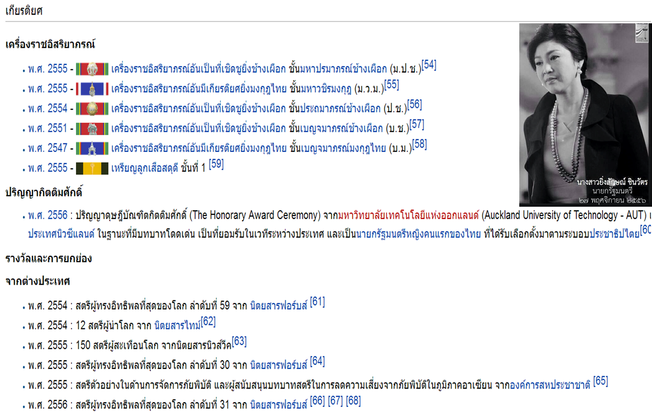 ปล ประวัติรางวัลของนายกรัฐมนตรีหญิงของประเทศไทย (ที่ถูกล่าวหาจากคนไทยบางคนว่าโง่ครับ)