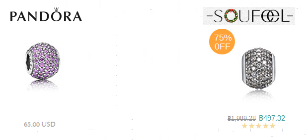 จขกท.เป็นคนชอบเครื่องประดับยี่ห้อ Pandora ค่ะมันน่ารักดีดูมีความหมาย ค่อย ๆ ซื้อค่อย ๆ เก็บเล็กผสมน้อยให้ชามส์ (ลูกปัด) แต่ละชิ้น ๆ แทนเรื่องราวที่ผ่านมาในชีวิต แต่ราคาแบรนด์นี้ก็อย่างที่รู้ ๆ กันว่าโหดใช่ย่อย จขกท.เลยลองหาข้อมูลในอากู๋เผื่อว่าจะมีใครนำเข้ามาขายถูกกว่าช้อปบ้าง (จขกท.ใช้คีย์เวิร์ดในการค้นว่า ขายเครื่องประดับ pandora ของแท้ และ authentic pandora charms on sale) แล้วก็เจอเวปที่ชื่อว่า soufeel ค่ะ ราคาถูกม๊ากกกกกกกกกก.... ตอนแรกเกือบพลาดคลิกซื้อซะแล้ว