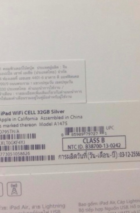 อยากทราบว่าคำว่า Class B ด้านหลังกล่องไอแพดแอร์นี้ หมายถึงอะไรน่ะครับ