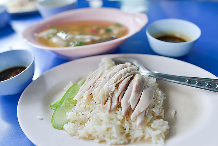 ข้าวไม่แฉะออกร่วนๆแต่ยังคงความหอมมันไว้ ที่มาพร้อมกับเนื้อไก่นุ่มลิ้นที่สามารถเลือกสั่งเฉพาะส่วนได้ตามใจ