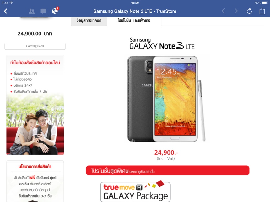 Note 3 LTE 4G ใน true online store มาแล้ว! เปิดราคาเบาๆ 24,900 บาท o_O!