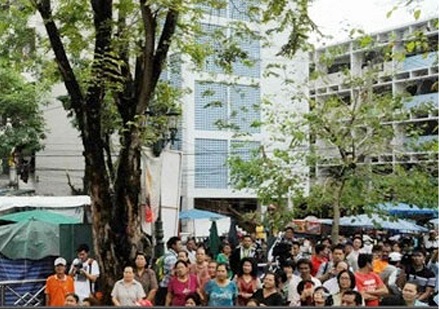 ก็ตรงข้ามสนามกีฬาไทย-ญี่ปุ่น เป็นแฟลต ตำรวจเขาบอกแล้วไงอาจขึ้นไปทางแฟลต ตรงบันไดหน้าแฟลตเป็นช่องลม มีรูเต็มไปหมดเขาไม่ได้กั้นว่าไม่ให้ขึ้น แฟลตดินแดงใครก็ขึ้นได้ มัวแต่ดูรูปตึกตรงกระทรวงแรงงาน นั่นตำรวจเขาต้องขึ้นไปดูฝั่งของเขาอยู่แล้ว อีกอันเดี๋ยวจะถามว่าทำไมชาวบ้านไม่โวย ปืนนะครบใครอยากจะโวย แล้วอีกอย่างแก็สน้ำตาขนาดนั้นปิดประตูกับหน้าต่างอย่างเดียวไม่มีใครกล้าออกหรอก ( รูปภาพประกอบจากในเวป)