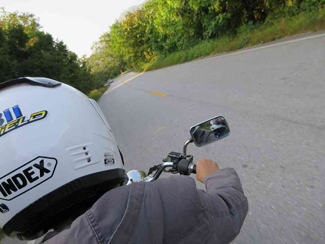 เป็นการขี่มอเตอร์ไซค์ในฤดูหนาวที่โคตรทรมานค่ะ อันที่จริงเราได้เตรียมหลอดไฟไปเปลี่ยนนะ เป็นวัตต์สูงขึ้น แต่ว่าไขควงพกพาที่เอาไปด้วยไขน็อตไม่ออก ได้แต่คิดว่า อดทนนะ อีกเดี๋ยวก็ถึงที่พักแล้ว