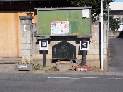 รอบๆ วัดจะมีป้ายแบบนี้ครับ เอาแอพของเขาไปยิงแล้วจะมีข้อมูลตัวละครขึ้นมา แต่ต้องใช้ iphone หรือ android นะครับ ผมมันพวกนอกคอกเลยอดดู เห็นเป็น URL อะไรซักอย่าง