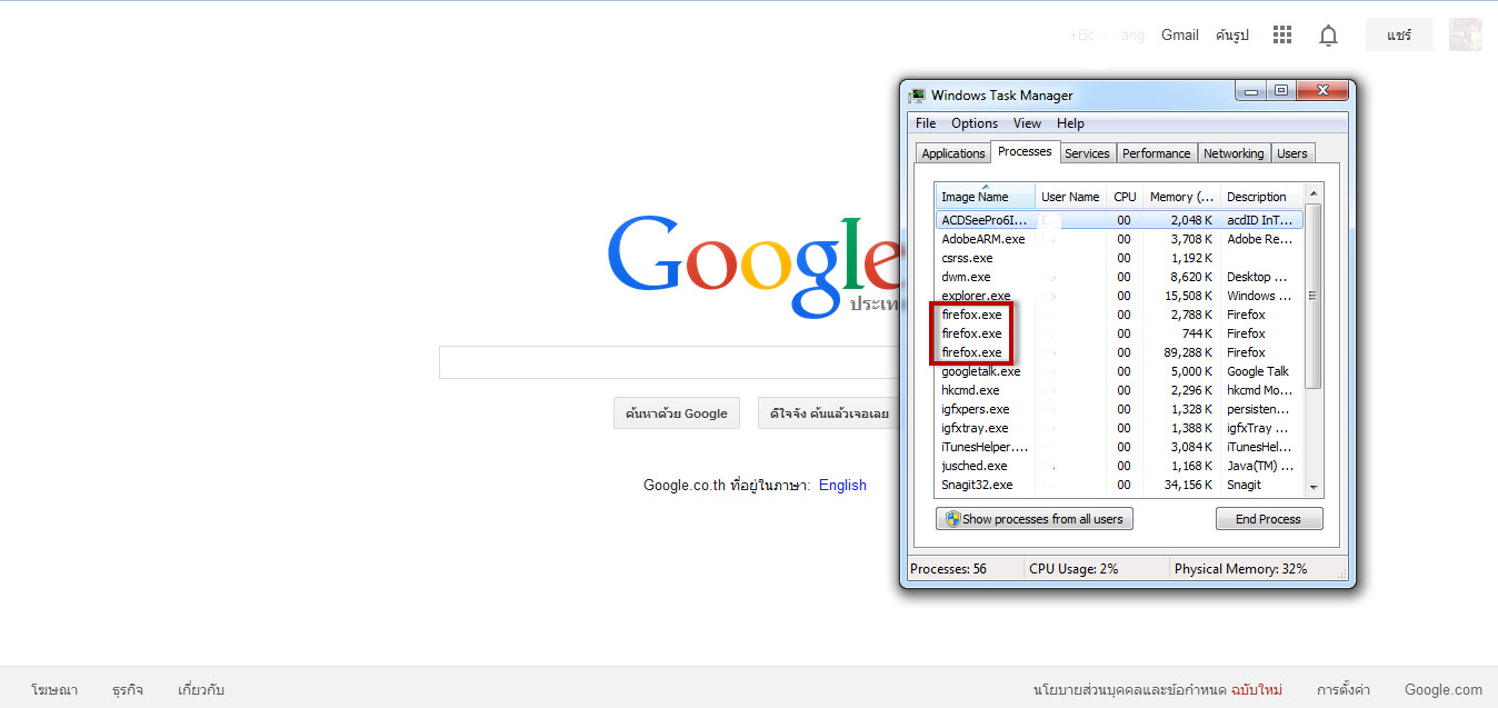 firefox ขึ้นใน Task manager ตั้งหลายอันค่ะ ทั้งที่เปิดแค่ tab เดียว (มีรูปค่ะ)