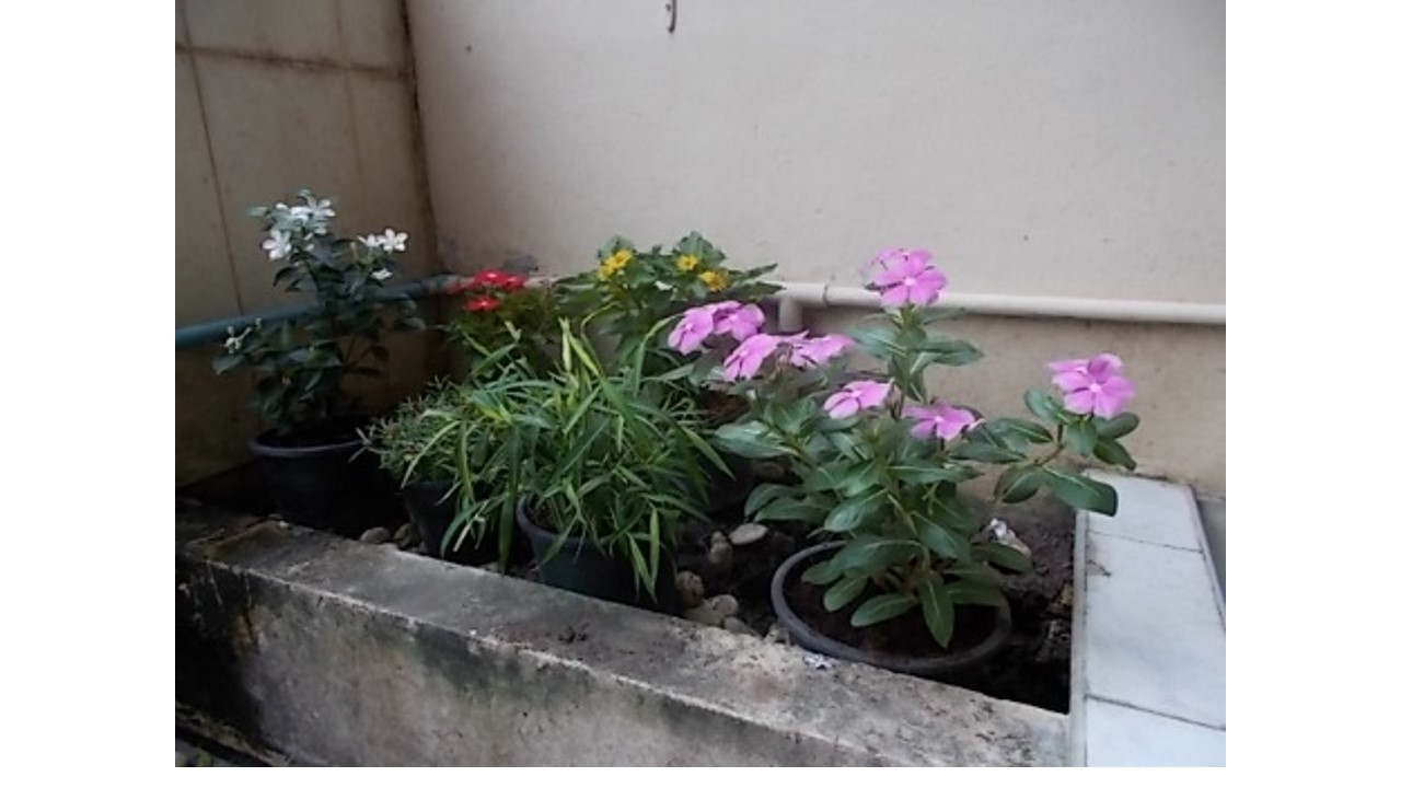 ตะก่อนมุมบ้านตรงนี้ มีต้นไม้ขึ้นเกะกะ เลยถอนต้นไม้ถอนรื้อออกหมด แล้วนำกระถางดอกไม้มาใส่แทน กระถางละ 20 บาท ใส่ปุ๊บชอบใจปับ พวกเราว่าโอเคไหม?