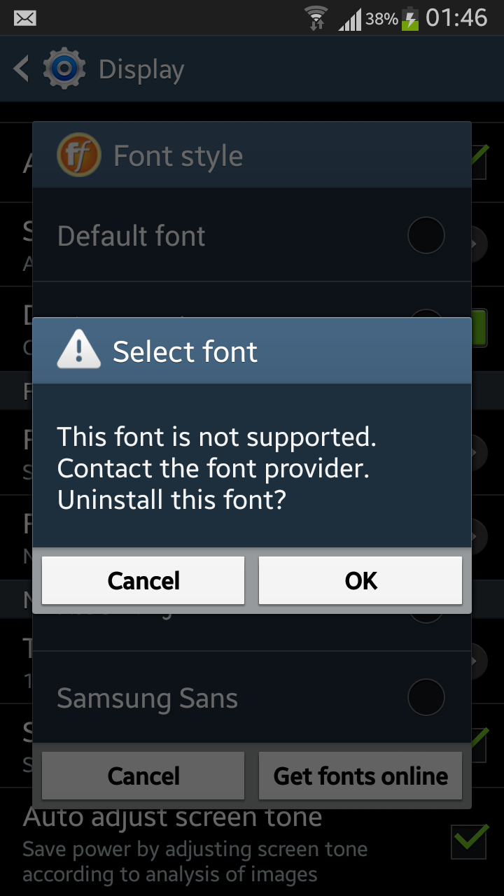note2 up 4.3 แล้วเปลี่ยน font (ที่โหลดมาตะหาก) ไม่ได้อะค่ะ