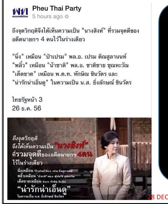 เพื่อไทย เขาบอกว่า นายกฯ ยิ่งลักษณ์ ได้ข้อดีของอดีตนายกฯ ไทยรวมกันถึง 4 คน