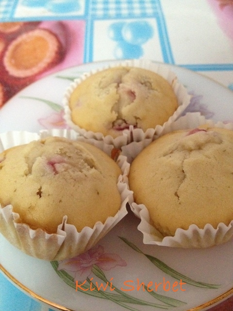 อาทิตย์ที่แล้วบังเอิญไปเจอบล็อกของคุณ tiara ตอนแรกคิดว่าจะทำเป็นบลูเบอร์รี่มัฟฟิน แต่เพราะบลูเบอร์รี่แพงมาก จึงเปลี่ยนมาเป็นสตรอเบอร์รี่แทนซึ่งราคาก็ไม่ได้ต่างกันมาก สุดท้ายตัดใจมาใช้สตรอเบอร์รี่แบบแพคในตลาดแทน อิอิ ส่วนผสมและวิธีทำทั้งหมดเข้าไปดูได้ที่นี่ค่ะ