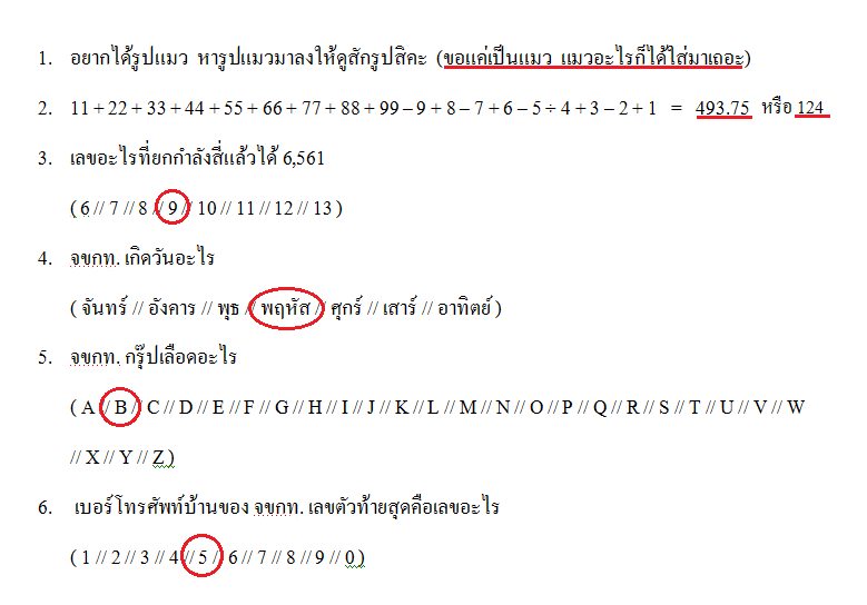 ปล. เออ ข้อ 2 จขกท. เพิ่งมาคิดในโทรศัพท์ได้ 124 (ตอนแรกคิดแต่ในกุกเกิล) ใครตอบสองคำตอบนี้ถือว่าถูกแล้วกันนะคะ