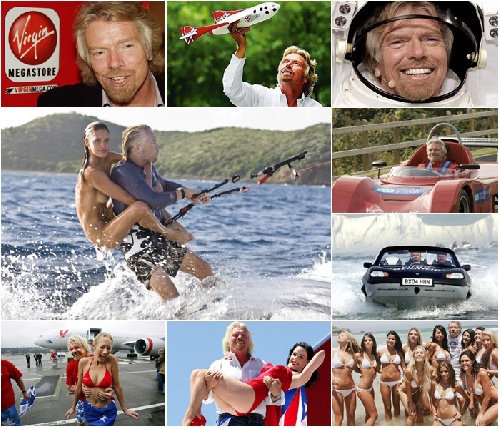 ด้วยภาพลักษณ์นักธุรกิจนอกกรอบ ตำราไหนว่าแน่พี่ขอแหก เสาะแสวงหาความท้าทาย ในการดำเนินชีวิตและธุรกิจ เลิกเรียนตั้งแต่อายุ 16 มาเอาดีด้วยการทำนิตยสารสำหรับนักเรียนเป็นธุรกิจ ค่อยๆ ขยายธุรกิจอื่นๆ มากมาย ไม่เว้นแม้แต่สายการบิน เป็นเพลย์บอยแถมรวยภาพที่ปรากฏก็เลยแสบๆ อย่างที่เห็น