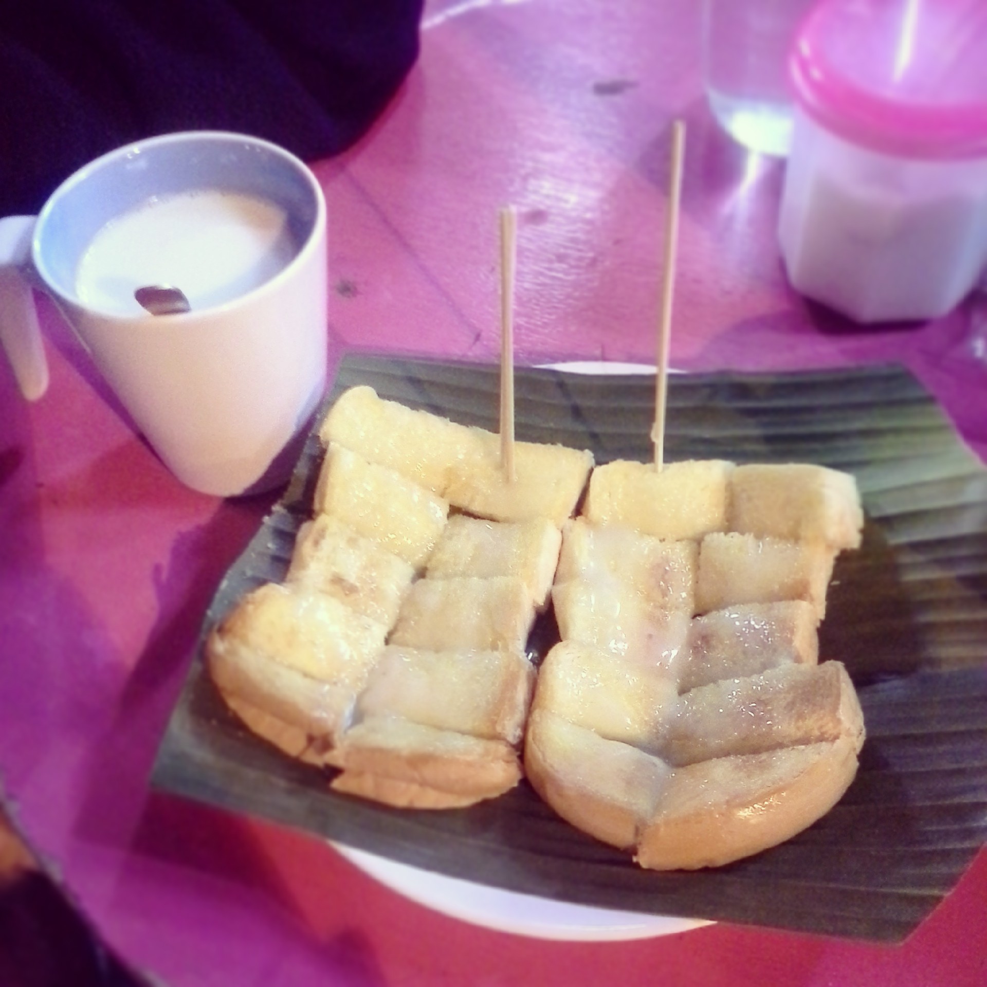สั่งขนมปังปิ้งเนยนม กับนมอุ่นๆคนละแก้ว
