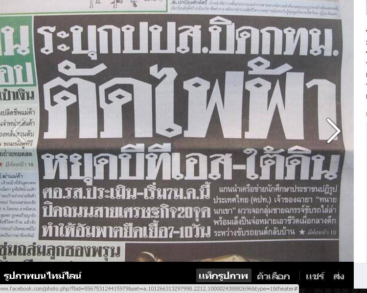 หนังสือพิมพ์ยักษ์ใหญ่ ได้พาดหัวตามคำประกาศของแกนนำม๊อบนกหวีด ว่า จะตัดไฟฟ้าทั่ว กทม.