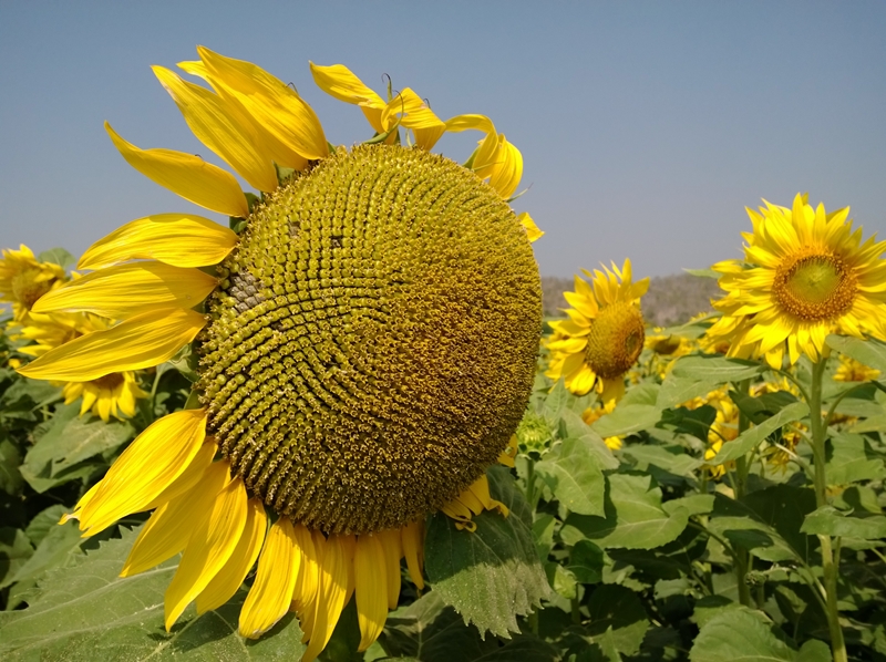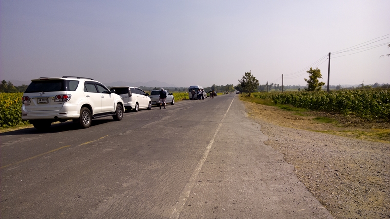 อย่างที่บอกครับ ทุ่งทานตะวันอยู่ริมถนนเลย จอดรถถ่ายภาพสวยๆได้สะดวกมาก ลมพัดเย็นๆ แดดร้อนๆนี่ กลายเป็นอากาศกำลังดีไปเลยครับ