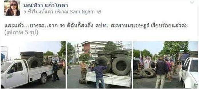 Oh My God...ปีใหม่ !!! มีผู้ทำบุญด้วยการบริจาคยางรถยนต์ให้ม๊อบที่กรุงเทพฯ