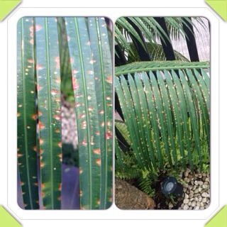 ต้นปรงภูเขาที่บ้านระยะหลังๆ เห็นใบแก่ๆ เริ่มมีจุดสีน้ำตาลคล้ายสนิม ตามรูป