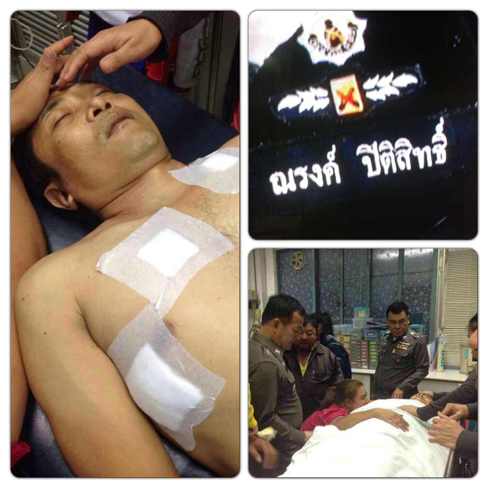 เป็นภาพของเหตุการณ์วันที่ 26 ธันวาคม 2556 ที่ม็อบกบฎนกหวีดบุกไปขัดขวางกระบวนการเลือกตั้ง ซึ่งในเหตุการณ์ได้มีการทุบทำลายทรัพย์สินของทางราชการ และมีการยิงปืนใส่ตำรวจจนเจ้าหน้าที่ตำรวจได้รับบาดเจ็บและเส