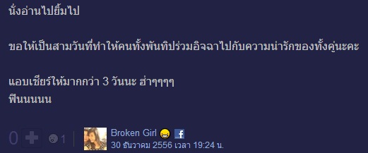 อยากขอบคุณเพื่อนๆหลายคนนะครับ ที่แอบเชียร์ให้พวกเราสองคน คบกันมากกว่า 3 วัน