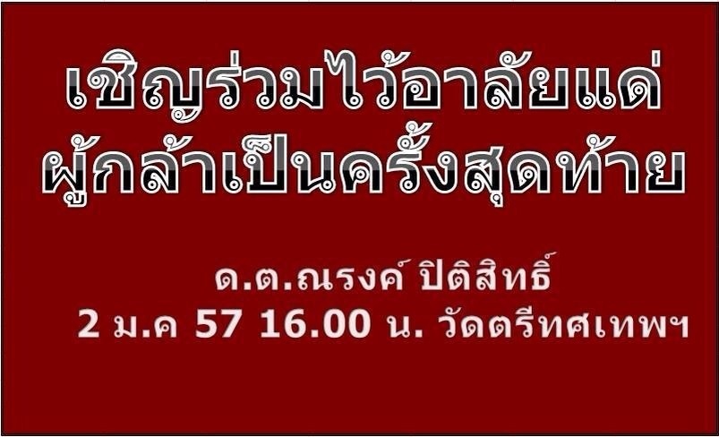 ขอเชิญไปร่วมไว้อาลัย ไปเป็นกำลังใจให้ครอบครัวผู้กล้า