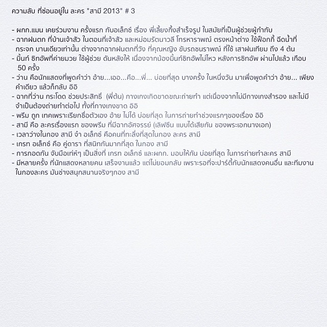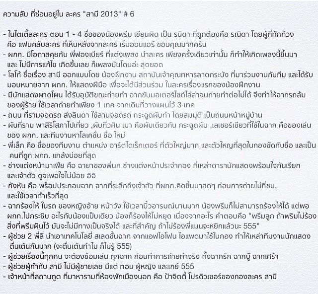 จาก IG @9manmay3 ผู้กำกับละครเรื่องสามี พออ่านแล้วสัมผัสได้ถึงการตั้งใจทำงานของทีมงานมากๆเลย ดูพิถีพิถัน ลงรายละเอียด และตั้งใจกันมากๆ อีกมุมก็สะท้อนความสนุกสนา