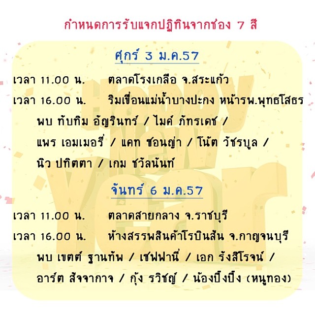 กำหนดการรับแจกปฏิทินจาก ช่อง7สี