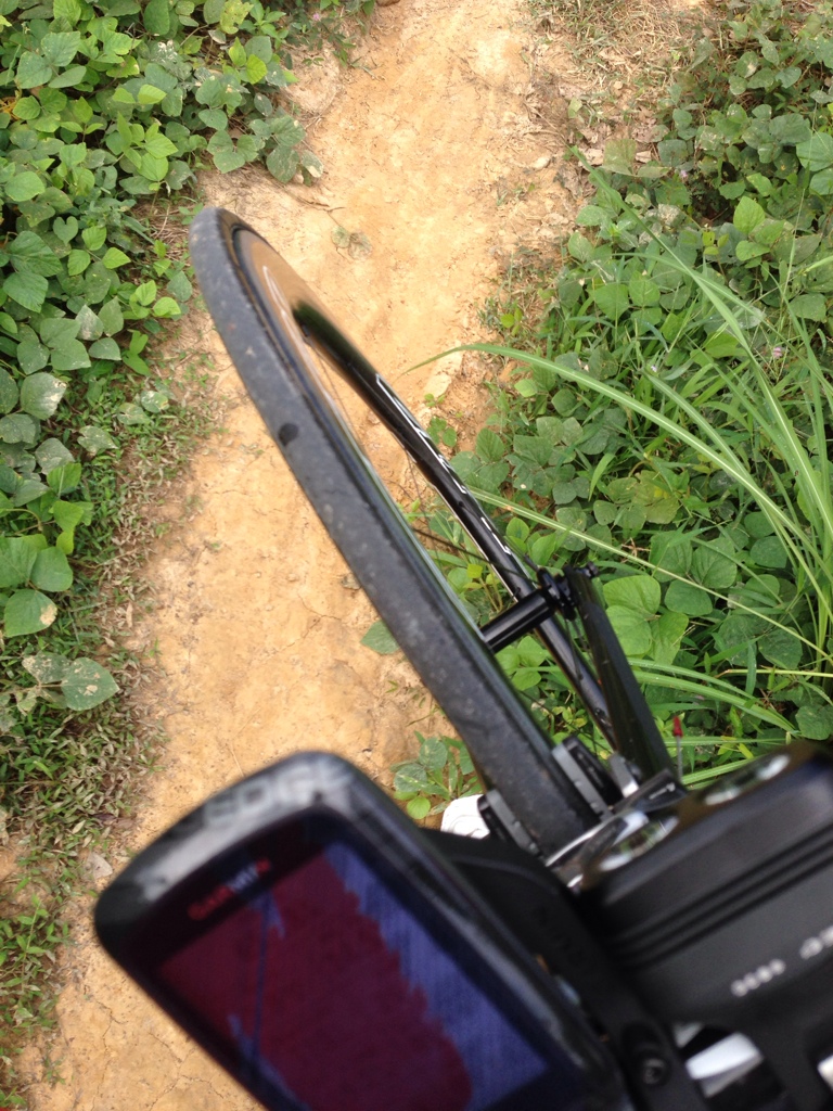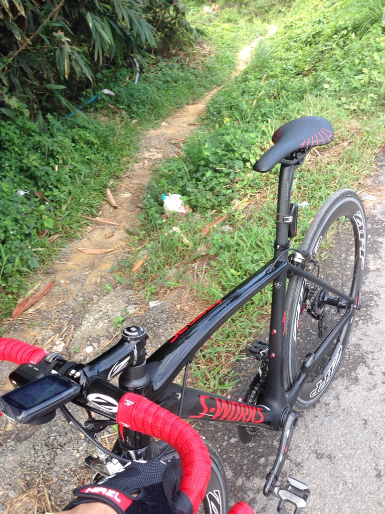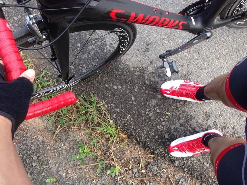 เลยถอดรองเท้า ถอดถุงเท้า แบกรถแบบที่เค้าแข่ง Cyclocross ไว้บนบ่านั้นแหละ มืออีกข้างก็ถือรองเท้ากับถุงเท้าไป แลดูทุลักทุเลพอสมควร