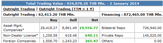 ตามประเภทนักลงทุน ประจำวันที่ 2 มกราคม 2557 ดังนี้