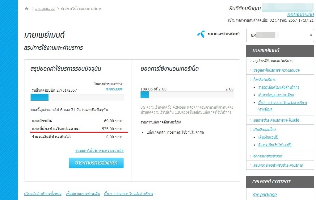 เพราะ ผมโทรน้อยมาก และแทบไม่ได้ใช้เน็ต เพราะส่งเครื่องซ่อมตั้งแต่ต้นเดือน ธ.ค. 56 (ซ่อม 10 วัน) + ซ่อมไม่หายก็เลยคืนเครื่องตั้งแต่กลางเดือนที่แล้ว ( ใช้แค่ 189.86 MB จาก 2 GB )