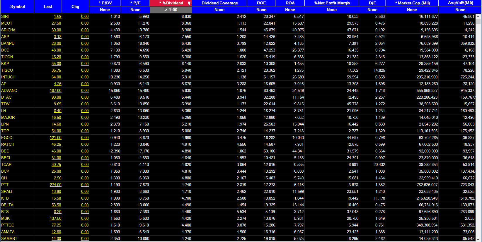 เอาตารางหุ้น SET 100 เรียงตามปันผลมาฝาก ไม่น่าเชื่อว่า SIRI มาที่ 1 ฮาๆ