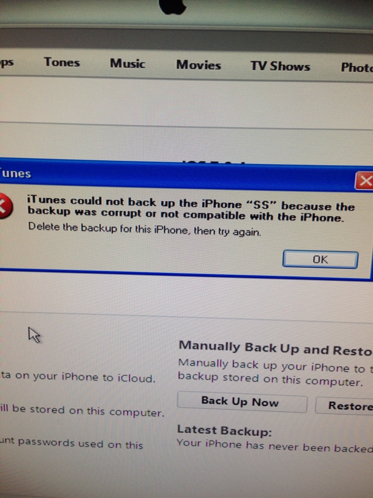 สอบถามกน่อยครับ จะ backup ข้อมูล ไอโพน แต่ โปรแกรม ไม่ให้ ขึ้นข้อมูลแบบนี้ ทำไงดีครับ