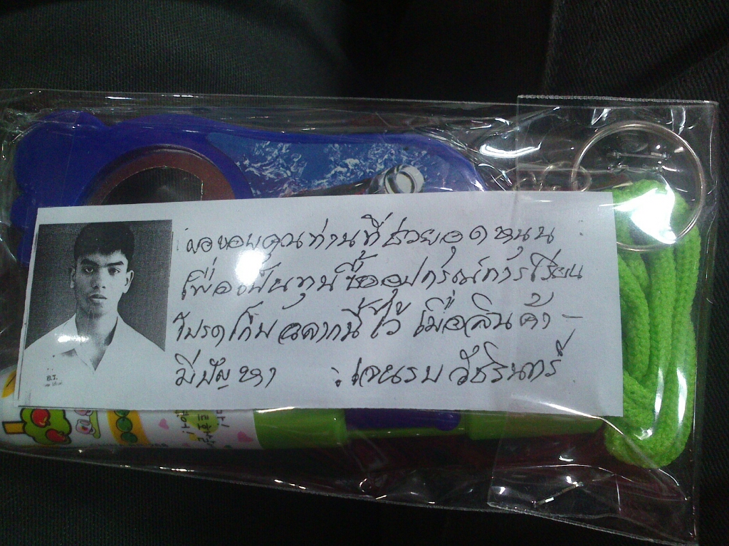 พอมาวันนี้เจออีก น้องเขาก็ยกมือไหว้ ผมควักแบงค์ร้อยให้น้องเขาไปใบนึง พร้อมกับหยิบปากกาแบบในรูปให้ผมแพคนึง