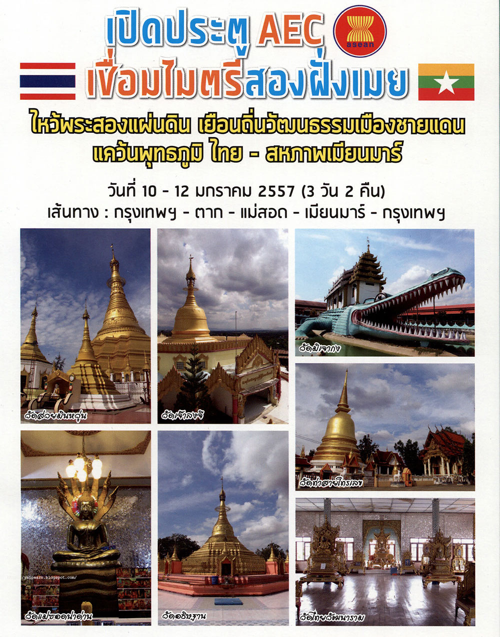 10-12 มกราคม 2557 ในเส้นทาง กทม.-แม่สอด-เมียวดี (เมียนมาร์)-กทม. กำหนดการรายละเอียดตามเอกสารแนบ…
