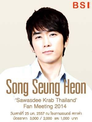 >>วันนี้ห้ามพลาด!!<< ซงซึงฮอน สวัสดีครับ ไทยแลนด์ แฟนมิตติ้ง 2014 เปิดพรีเซล บัตรที่สกาล่า 12.00 น.^£^