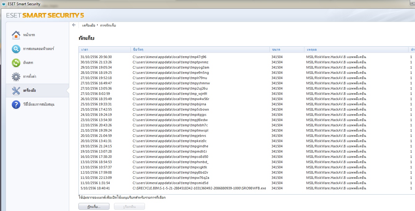 ผมใช้ Windows7 32bit โปรแกรม Nod32 ESET Smart Securuty 5