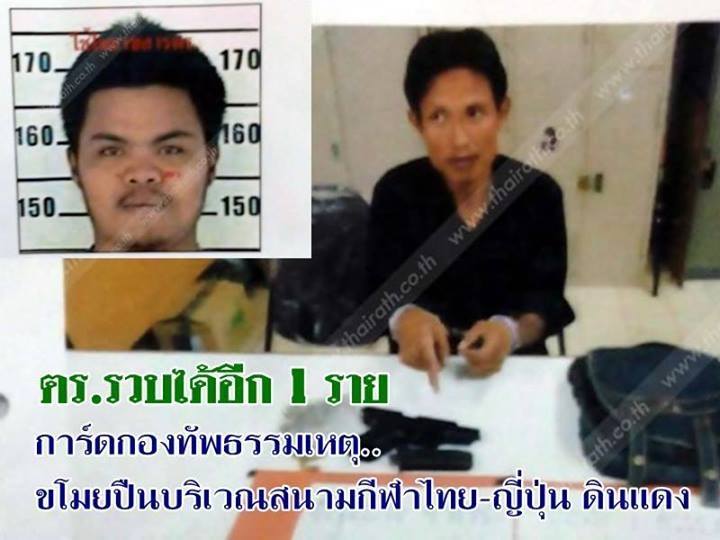 ตำรวจจับกุมญาติ "เชน เทือกสุวรรณ" พร้อมอาวุธปืนตราโล่จำนวนมาก ที่ถูกปล้นมาจากรถตำรวจ ที่ สนามกีฬาไทย-ญี่ปุ่น ดินแดง