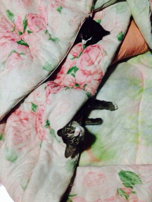 ตุ๊กกี้กับเหมียวเล็กค่ะ อากาศหนาว ห่มผ้าๆ